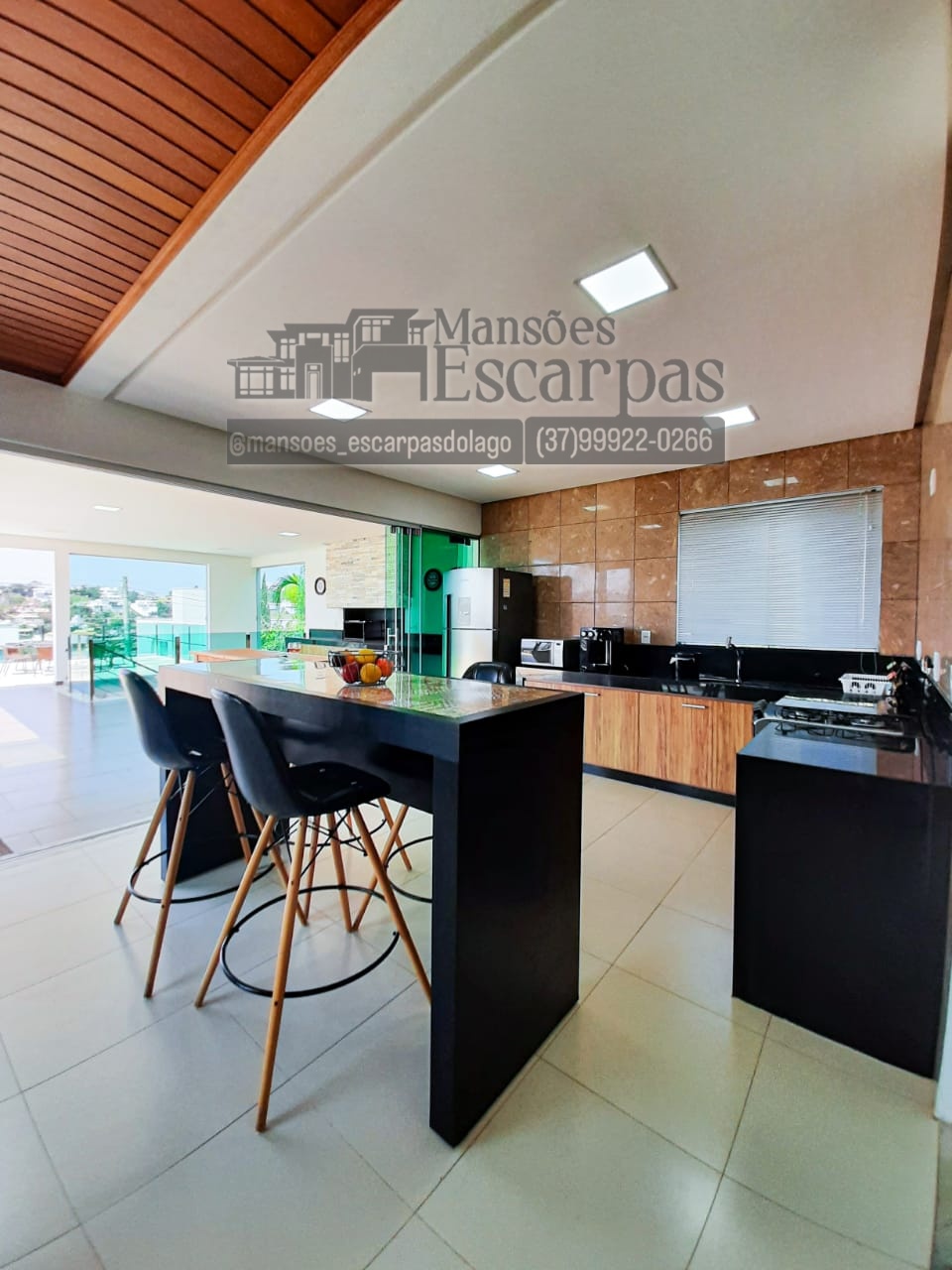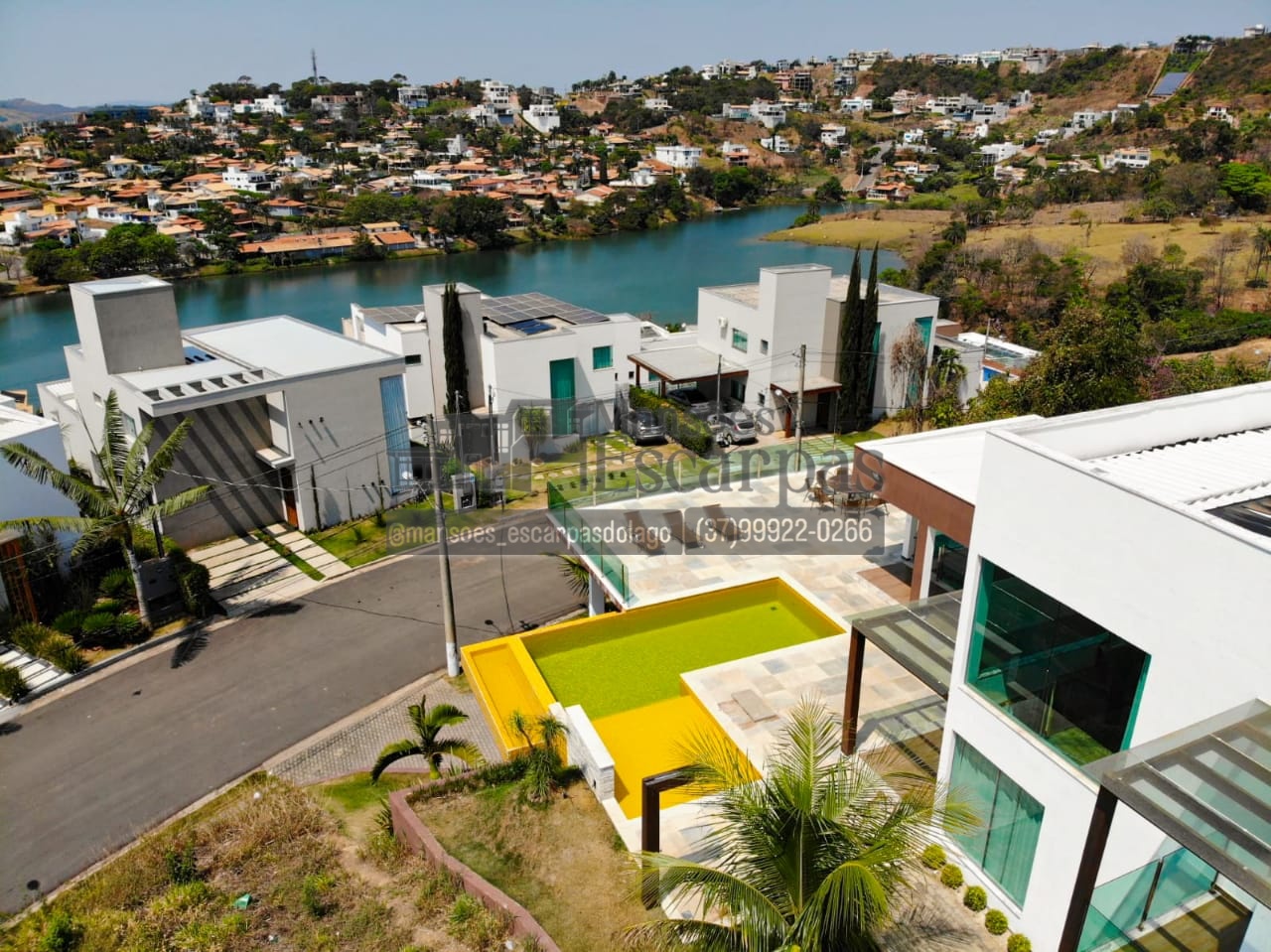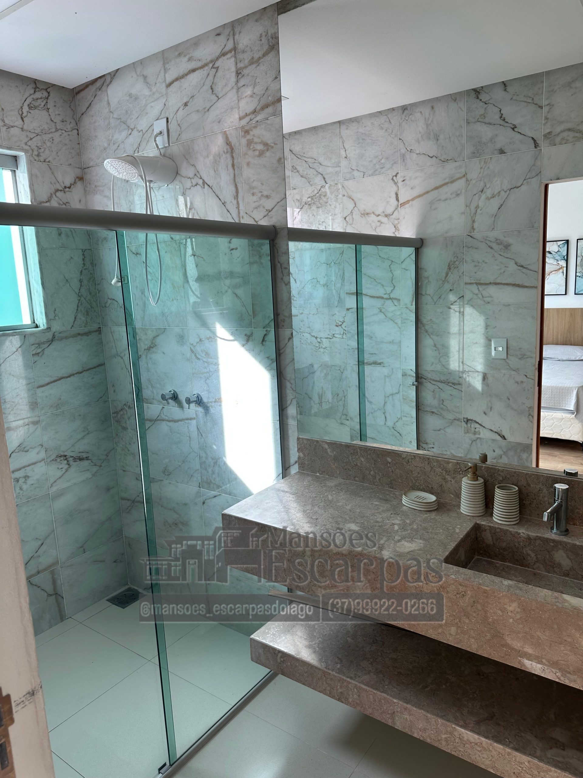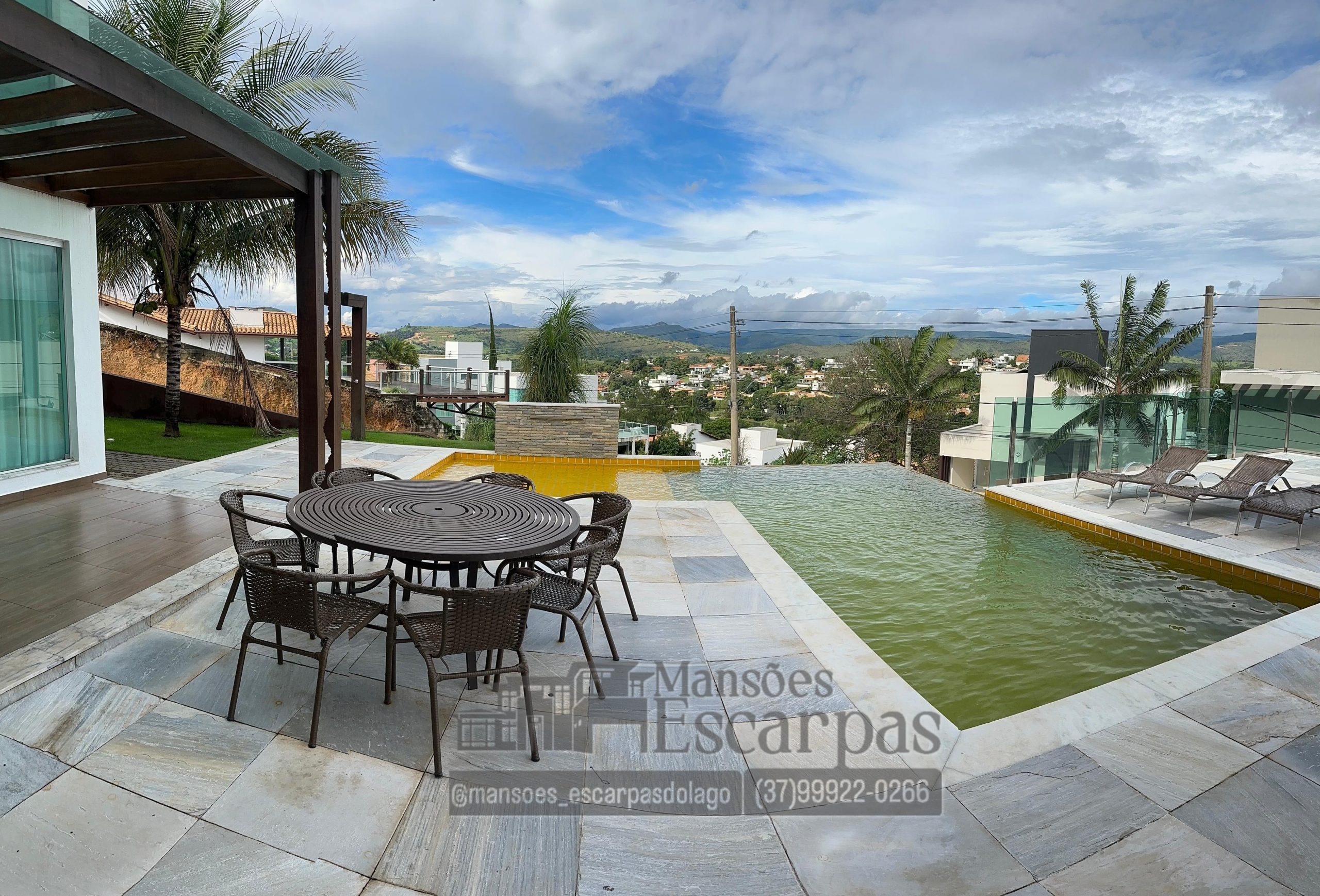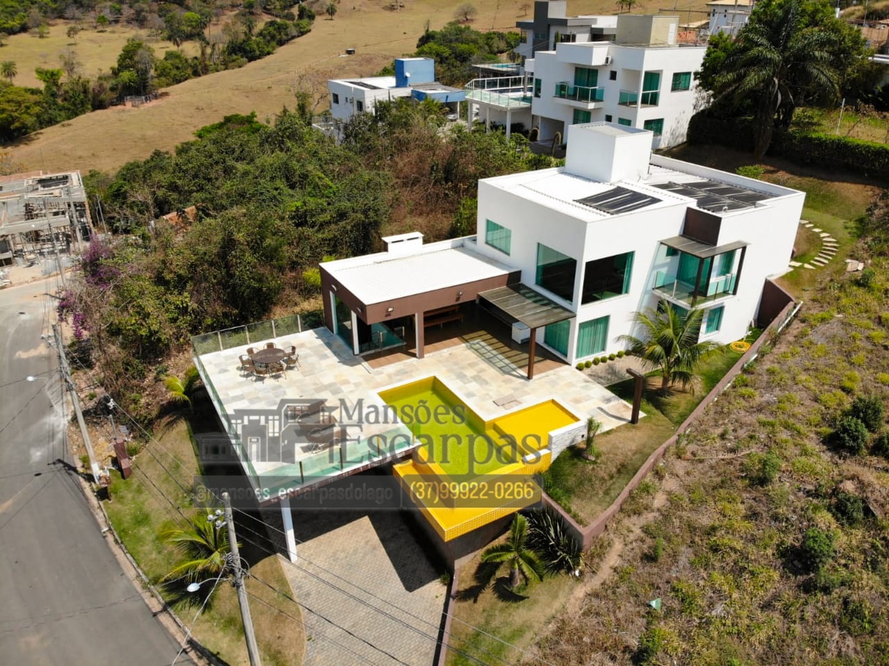 A casa conta com 5 suítes com ar condicionado e vista.