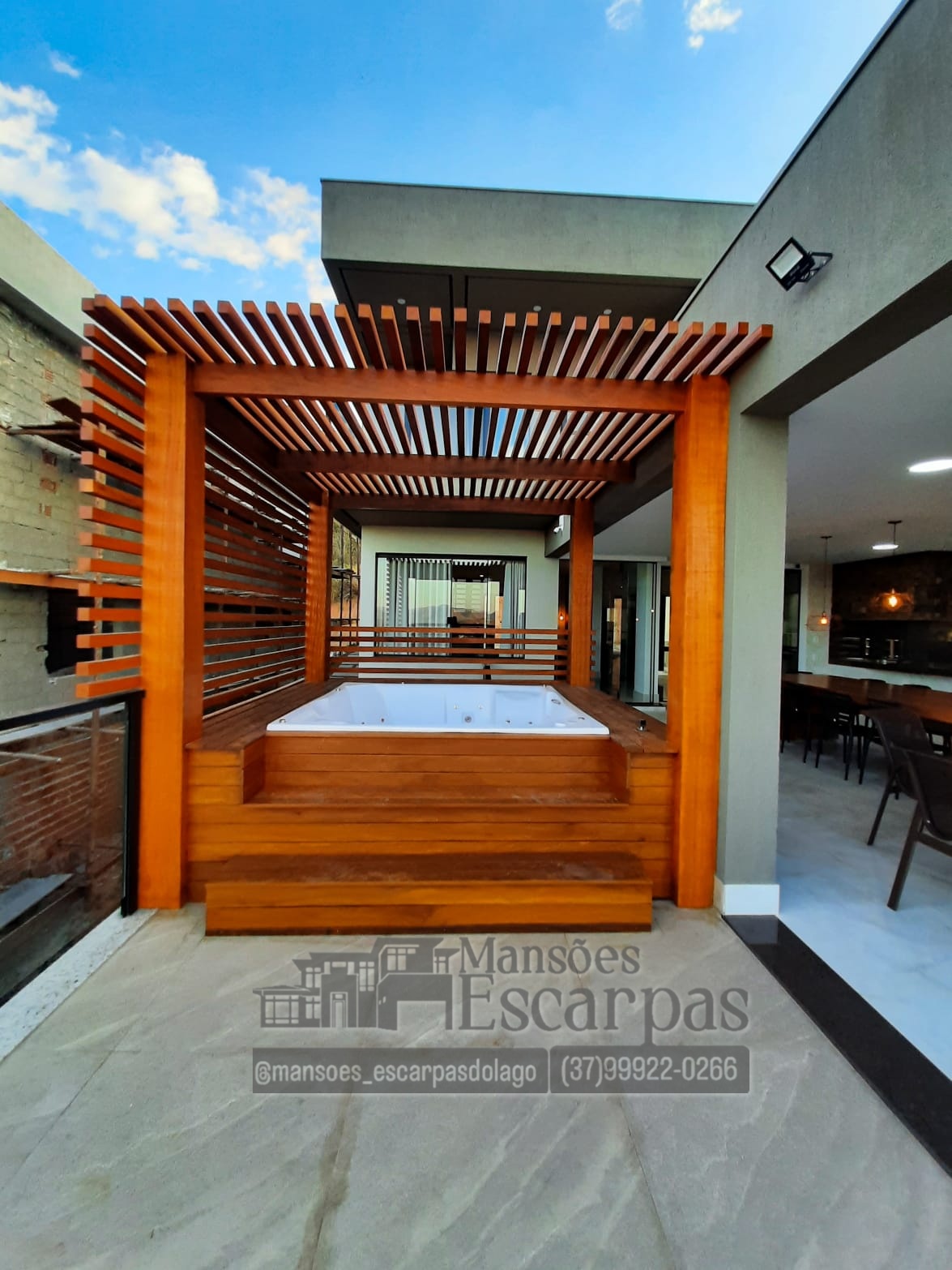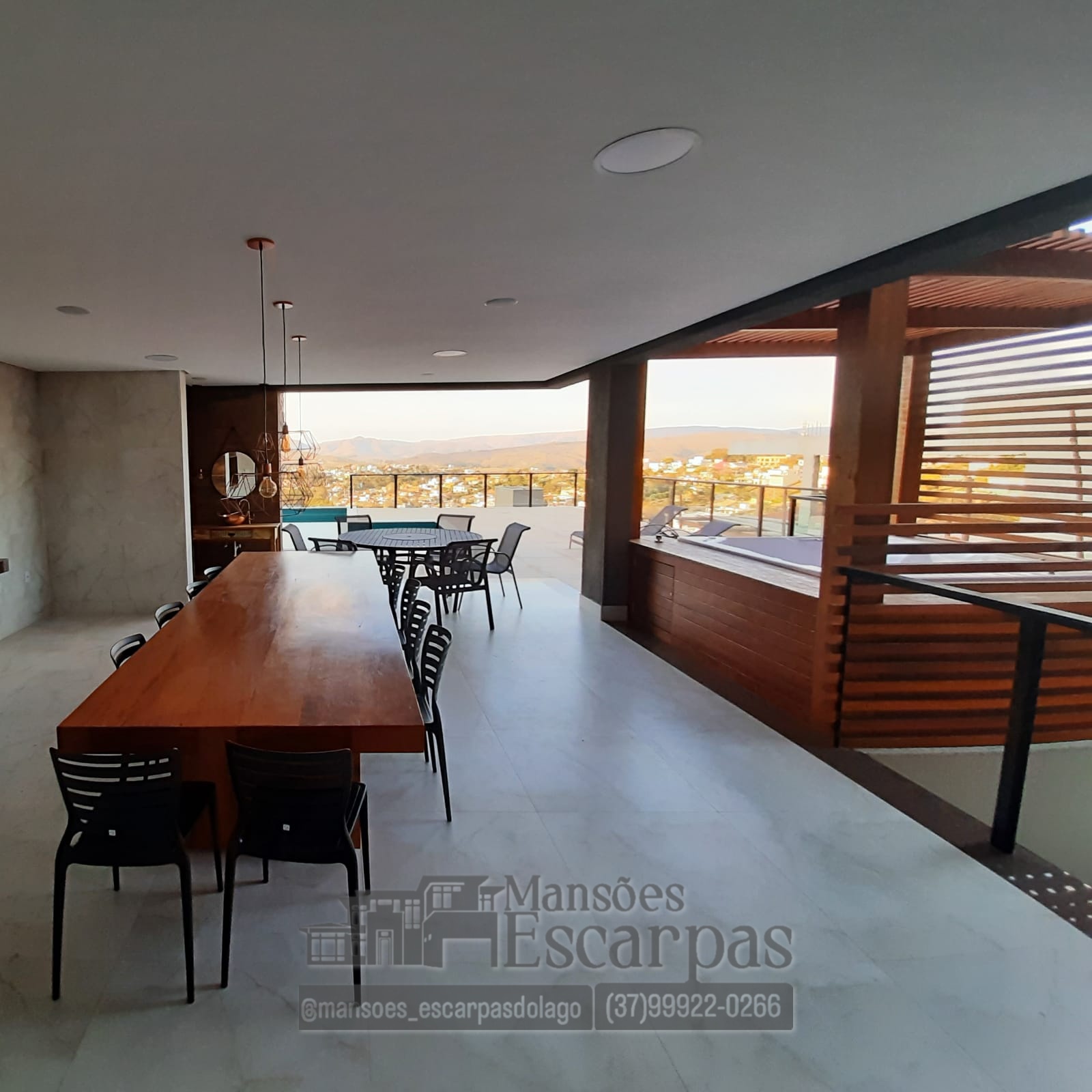 São 6 suítes, área gourmet, churrasqueira, sauna, piscina aquecida com aquecimento elétrico, banheira para 7 pessoas.
